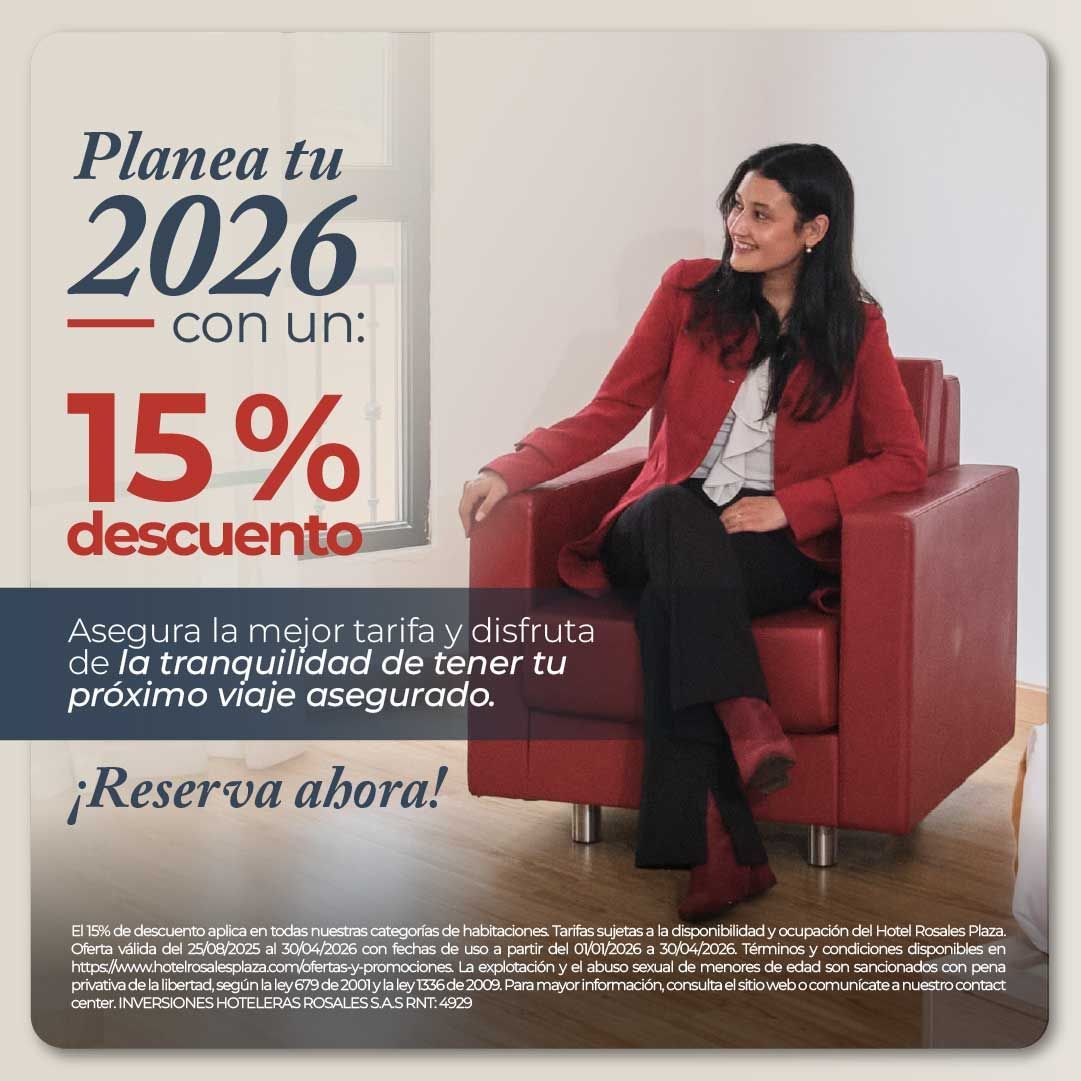 Aprovecha el 15% OFF que Hotel Rosales Plaza tiene para ti.